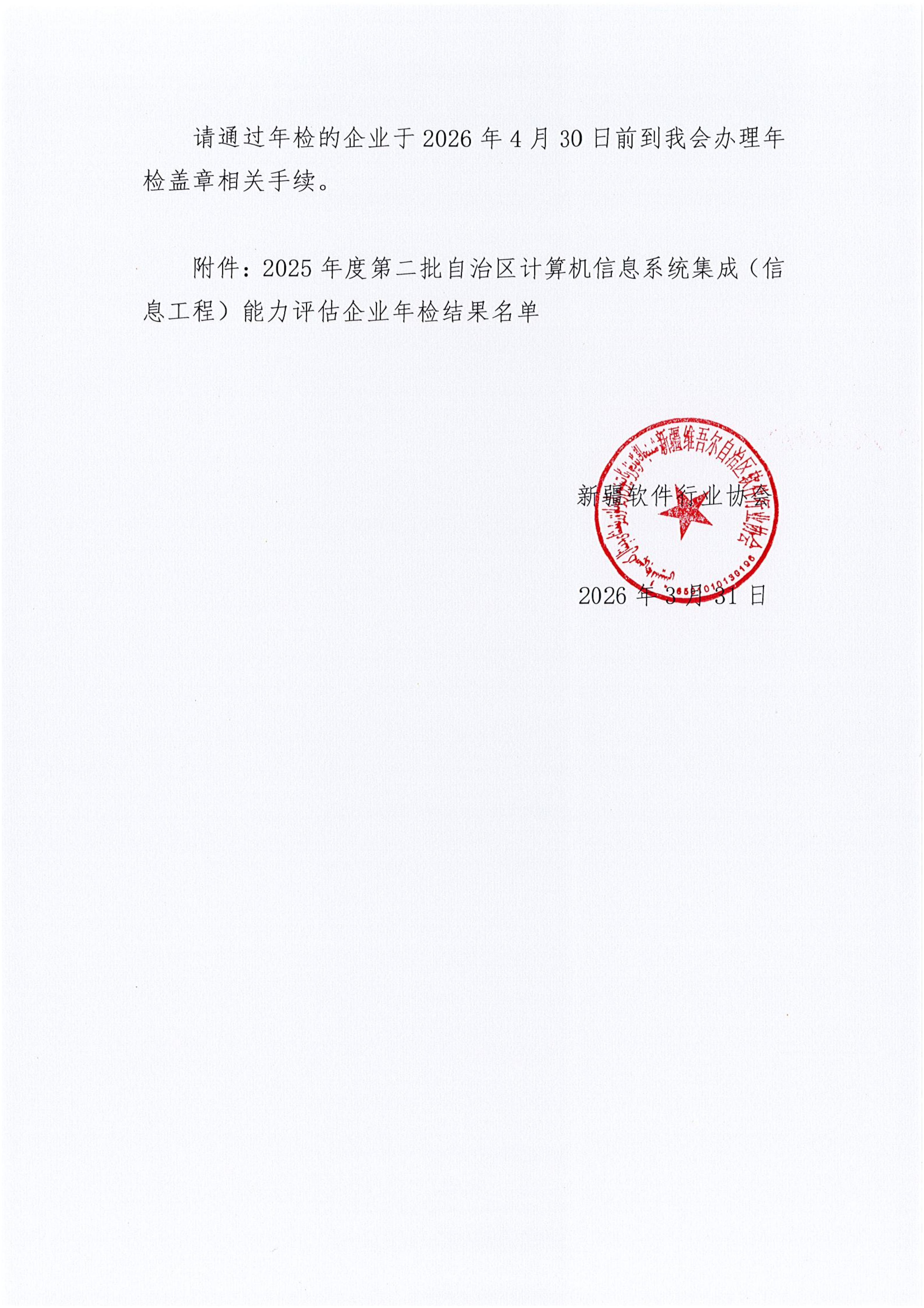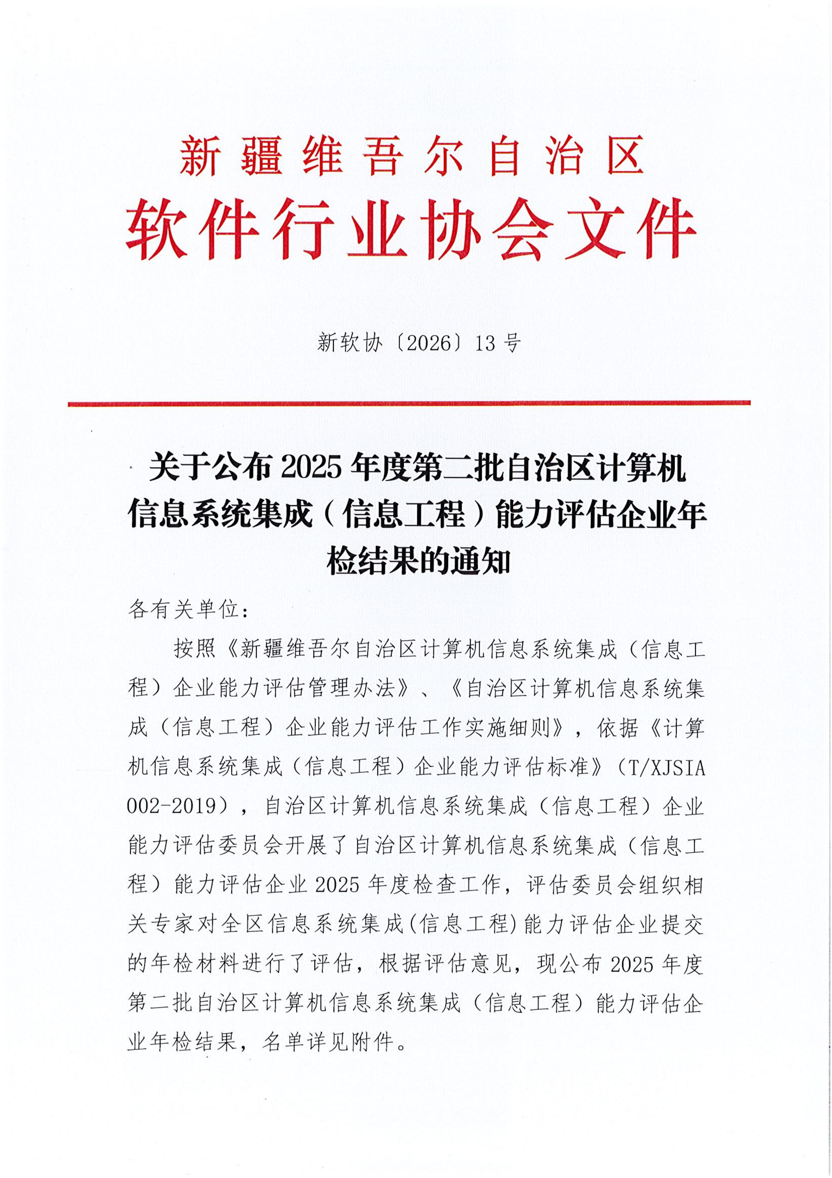 关于公布2025年度第二批通过自治区计算机信息系统集成(信息工程)能力评估企业年检的通知