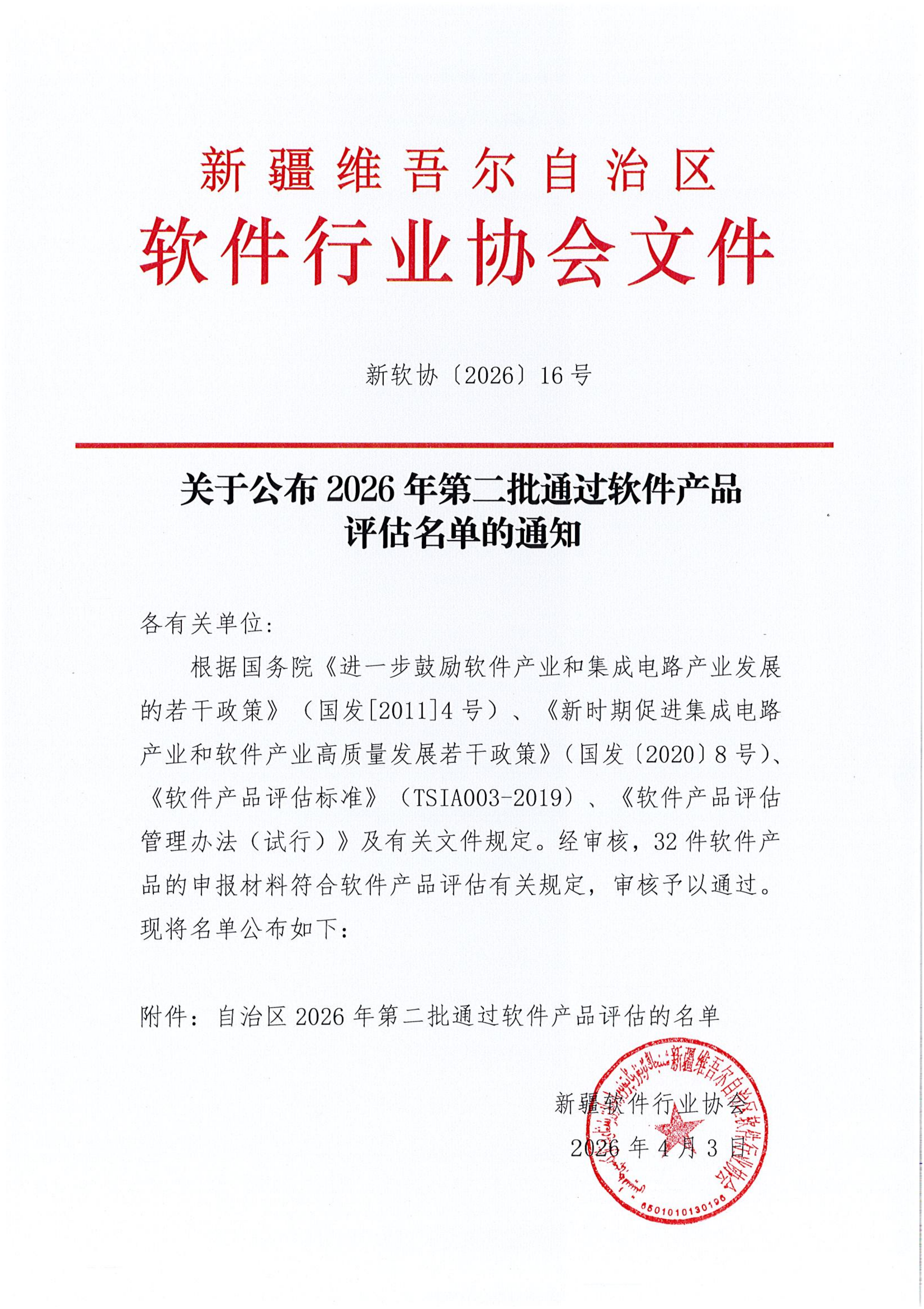 关于公布2026年第二批通过软件产品评估名单的通知